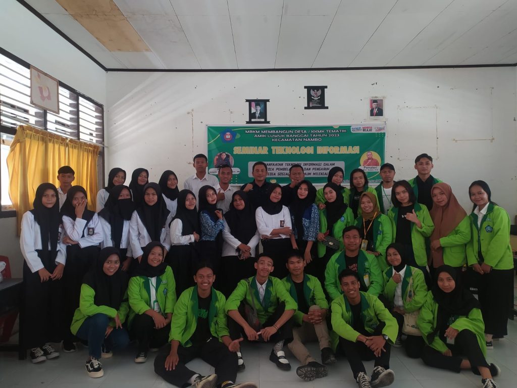 BANGGAI RAYA- Diisi tiga orang narasumber, mahasiswa peserta KKMK Tematik AMIK Luwuk Banggai menggelar seminar teknologi informasi di SMKN 3 Luwuk, Kecamatan Nambo, Rabu 4 Januari 2023.